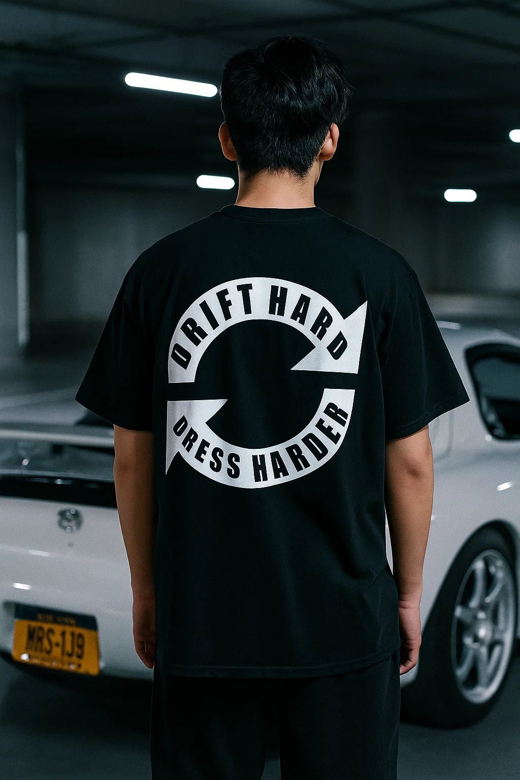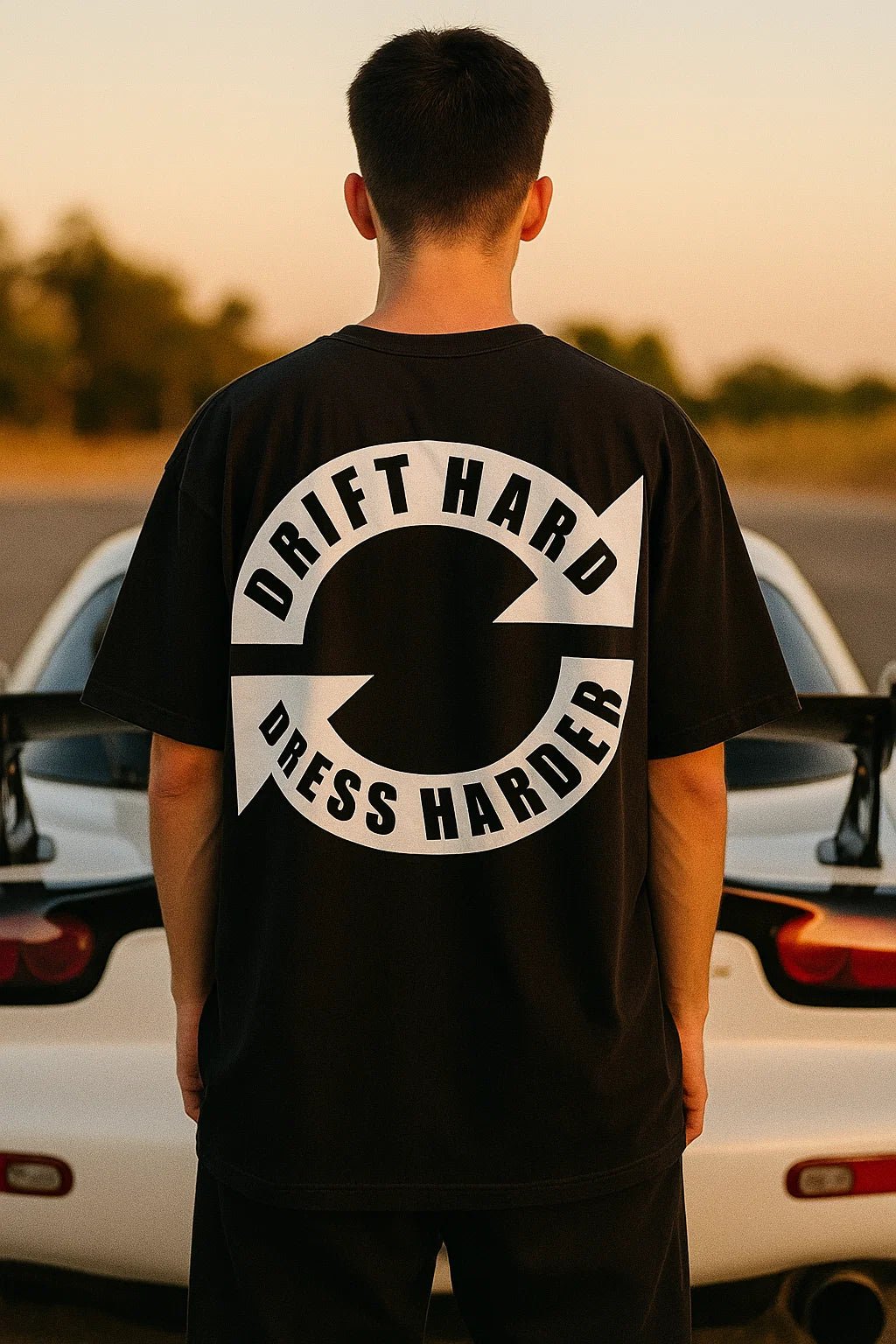 Drift Hard, Dress Harder. Si vas a dejar marca, que también sea con tu ropa.